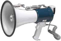 Megafoon, 25 watt met sirene. Voor het toespreken van grote groepen mensen.