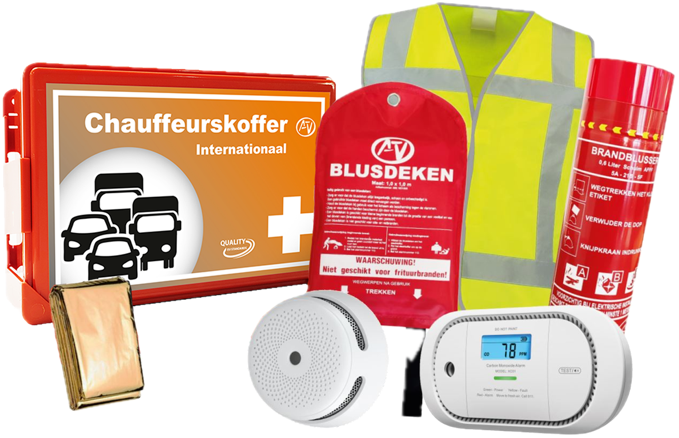 Het pakket bevat onder andere een brandblusser van 600ml, een rookmelder, een koolmonoxidemelder en een blusdeken, zo bent u voorbereid op branden en vermeid u een koolmonoxidevergiftiging. Daarnaast bevat het pakket ook een uitgebreide Chauffeurskoffer, een veiligheidsvest en een reddingsdeken hiermee bent u goed voorbereid op noodsituaties tijdens uw reis.